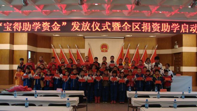 "寶得助學(xué)金":2006年至今,已連續(xù)四年每年捐資100萬元,在全區(qū)范圍內(nèi)資助2000名享受低保家庭的貧困學(xué)生,每人500元。